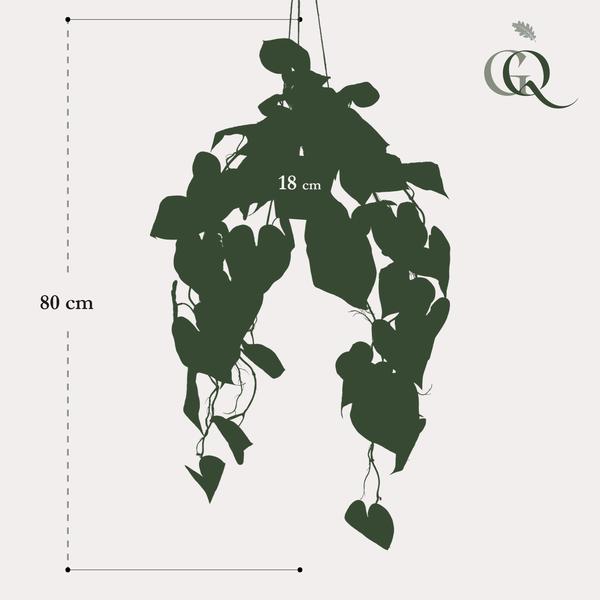 Die Anthurium Clarinervium hat wunderschöne herzförmige Blätter mit schönen weißen Adern, die wie Venen aussehen. Daher auch der niederländische Name Aderplant. Diese große, vollständige Kunst-Hängepflanze ist ein echter Blickfang. Sie verleiht jedem Raum, in dem sie hängt, sofort eine gemütliche grüne Atmosphäre. Diese wundervolle Kunst-Aderpflanze wird in einem hübschen Hängekorb geliefert. Niemand merkt, dass die Pflanze nicht echt ist. Eigentlich ist das einzige, woran man es merkt, dass sie kein Wasser benötigt. Das ist natürlich sehr praktisch für eine Pflanze, die so hoch hängt!