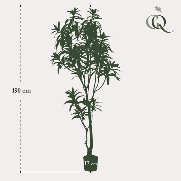 Die Dracaena, die auch als Drachenbaum bezeichnet wird, besitzt attraktive, zweifarbige grüne Blätter. Man kann sie einzeln im Raum platzieren oder als Teil einer Pflanzengruppe in verschiedenen Höhen und Farben aufstellen. Eine echte Dracaena mag keine Kälte und bei niedrigeren Temperaturen werden die Blätter schwarz. Bei unserem schönen künstlichen Drachenbaum müssen Sie sich darum keine Sorgen machen, er bleibt immer grün. Sie können die künstliche Dracaena bei uns in größeren oder kleineren Ausführungen bestellen.