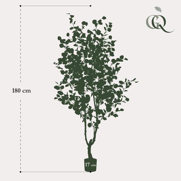 Der Eukalyptusbaum verleiht jedem Raum eine elegante Ausstrahlung und eine angenehme luxuriöse Atmosphäre. Unser künstlicher Eukalyptus ist nicht von echtem zu unterscheiden. Die vielen grünen und silbernen Blätter rauschen sanft. Dieser Baum wird auch als Blauer Gummibaum bezeichnet und stammt ursprünglich aus Australien, wo er der Nationalbaum von Tasmanien ist. In niederländischen Häusern und Büros kommt er besonders gut zur Geltung. Ein hervorragender Kauf! Unser künstlicher Eukalyptus ist auch in größeren und kleineren Größen erhältlich.